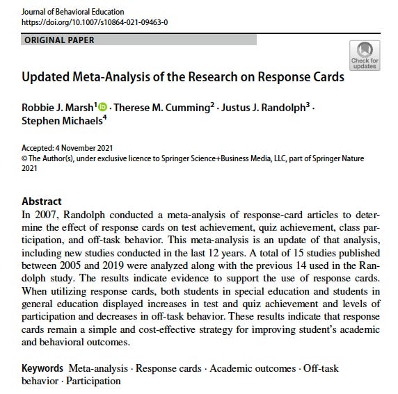 Research Bite #56: Updated Meta-Analysis of the Research on Response Cards